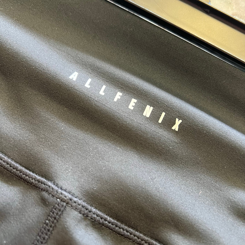These All Fenix black compression leggings feature a sleek white trim along the sides for a sporty touch. Designed for a secure, sculpting fit, they offer breathable, moisture-wicking fabric for all-day comfort. Perfect for workouts or casual wear!