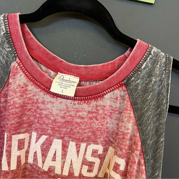 Arkansas Razorback Vibes Burnout Open Shoulder Graphic Top Large
