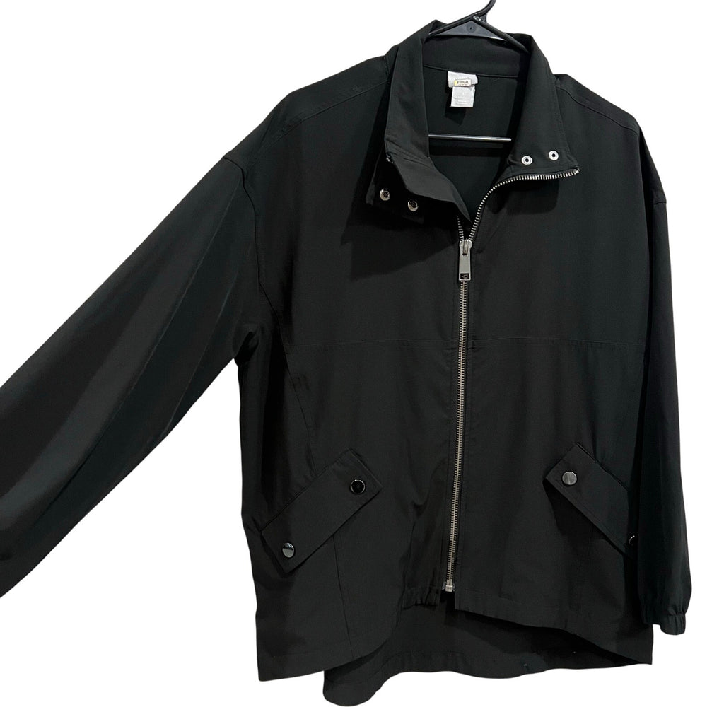 This lightweight black full-zip jacket from Chico’s is your go-to layer for effortless style and comfort. With a sleek silhouette, functional bottom pockets on both sides, and a versatile design, it’s perfect for tossing on over any outfit—whether you're out and about or keeping it casual.