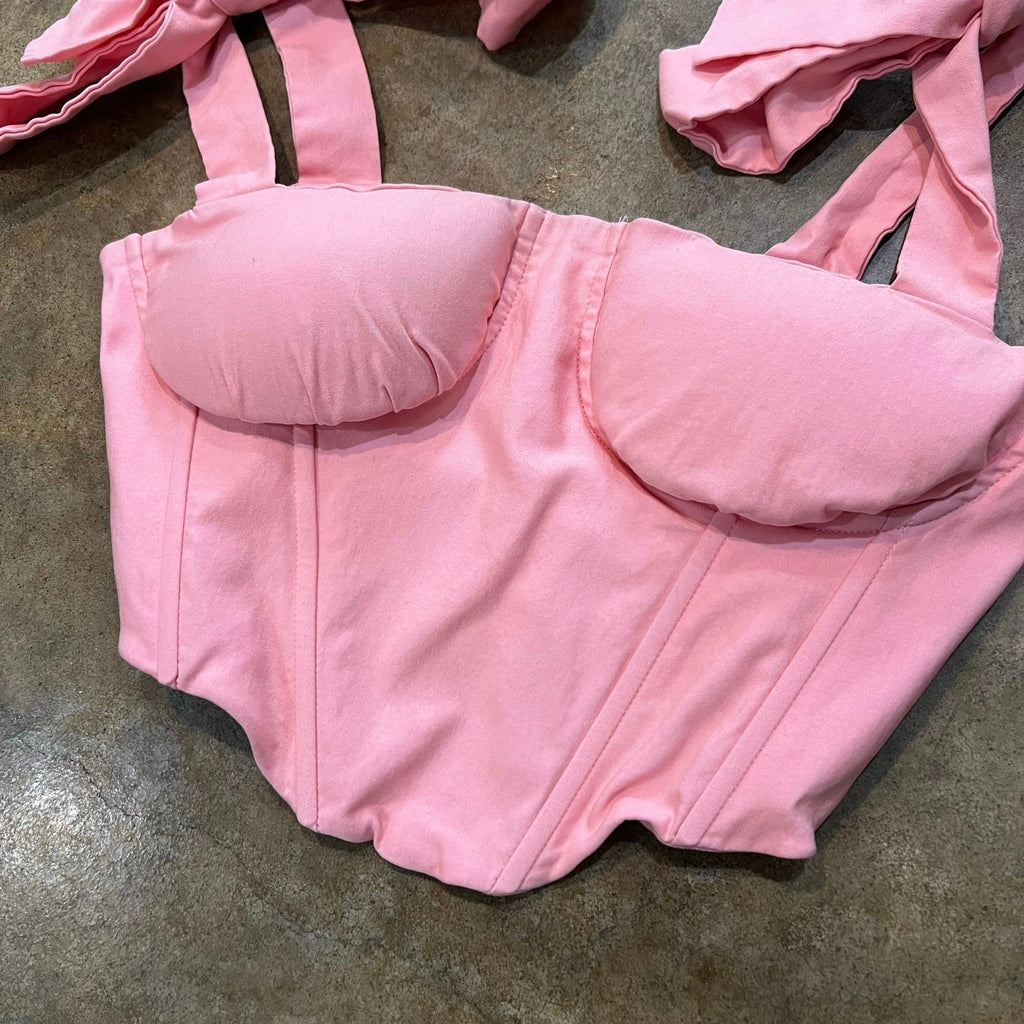 FashionNova Light Pink Tie Shoulder Corset Festival Top Size Small
