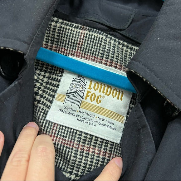 London Fog Black Double Breasted Button Trench Coat Size 10 Petite