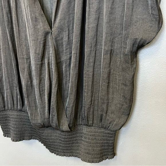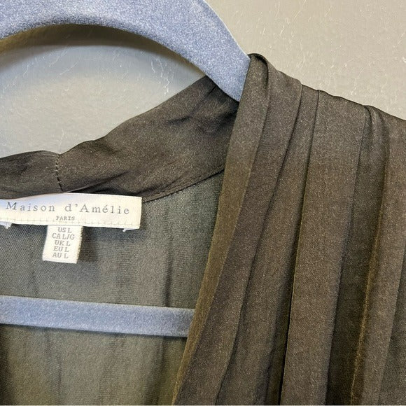 Maison D’Amelie Black Satin V-Neck Blouse Large