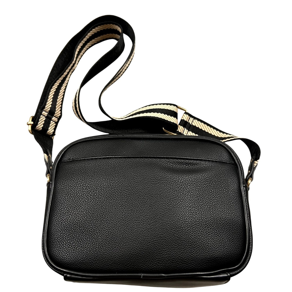 The adjustable crossbody strap allows for comfortable, hands-free wear, making it ideal for errands, travel, or nights out. The classic black finish pairs seamlessly with any outfit, from casual denim to dressed-up looks.