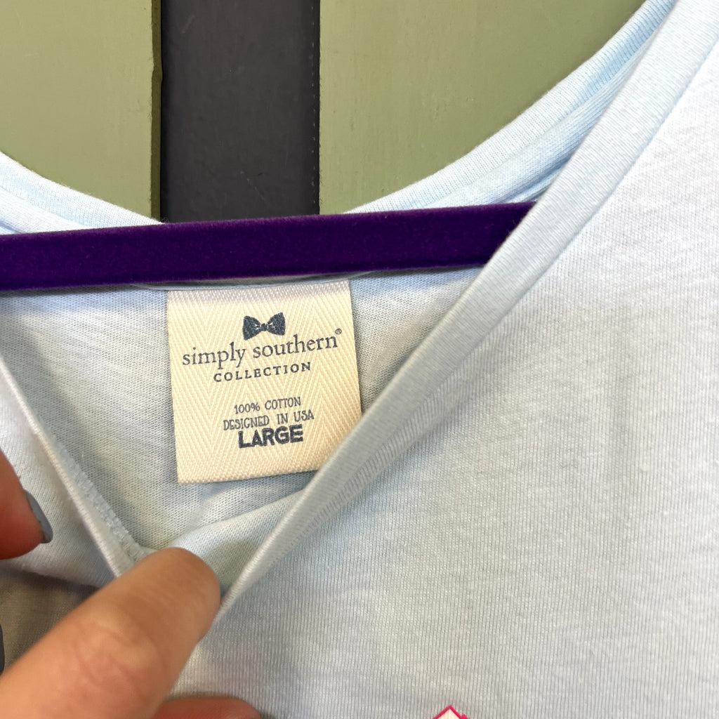 NWOT Simply Southern Light Blue Tropical Palm Tank Top Size Large