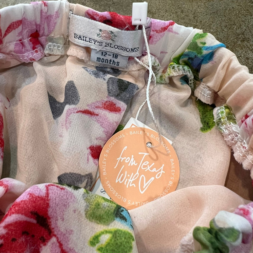 NWT Bailey's Blossoms Floral Off Shoulder Blush Lined Maxi Dress Size 12-18 Mo.