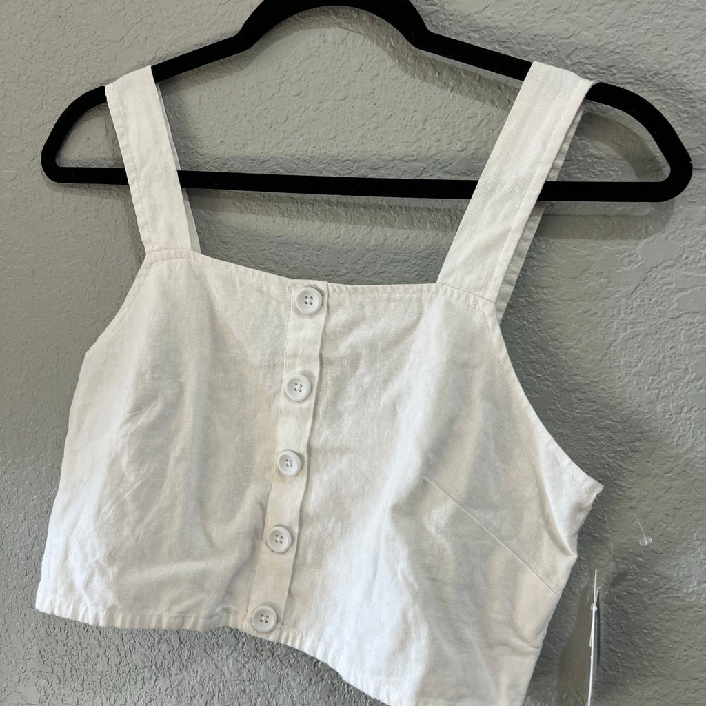 NWT BP. White Front Button Linen Cropped Tank Medium