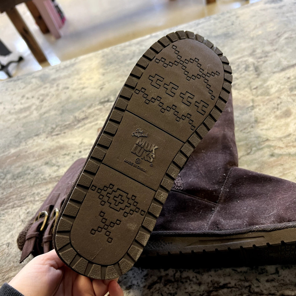 These NWT Muk Luks women’s Jean boots in brown faux suede are a stylish and cozy cold-weather essential. The rich brown color gives them a classic, easy-to-style look, while the faux suede finish adds a soft, polished touch.