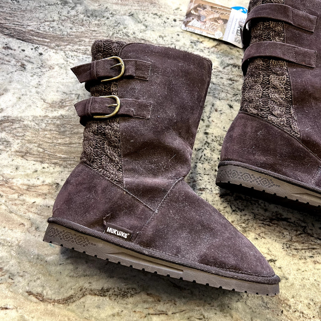 NWT Muk Luks Women's Jean Boots Brown Faux Suede Size 10