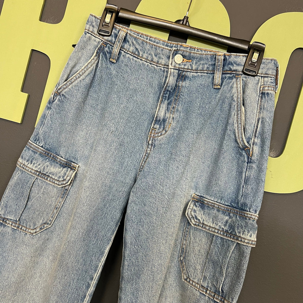 These Old Navy high-rise baggy cargo jeans offer a relaxed, comfortable fit with a trendy, oversized look. Featuring cargo pockets for added style and functionality, they’re perfect for casual wear with a laid-back vibe.