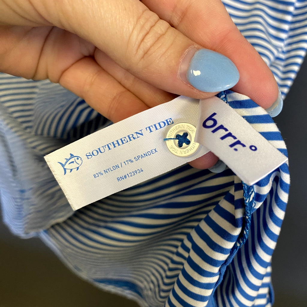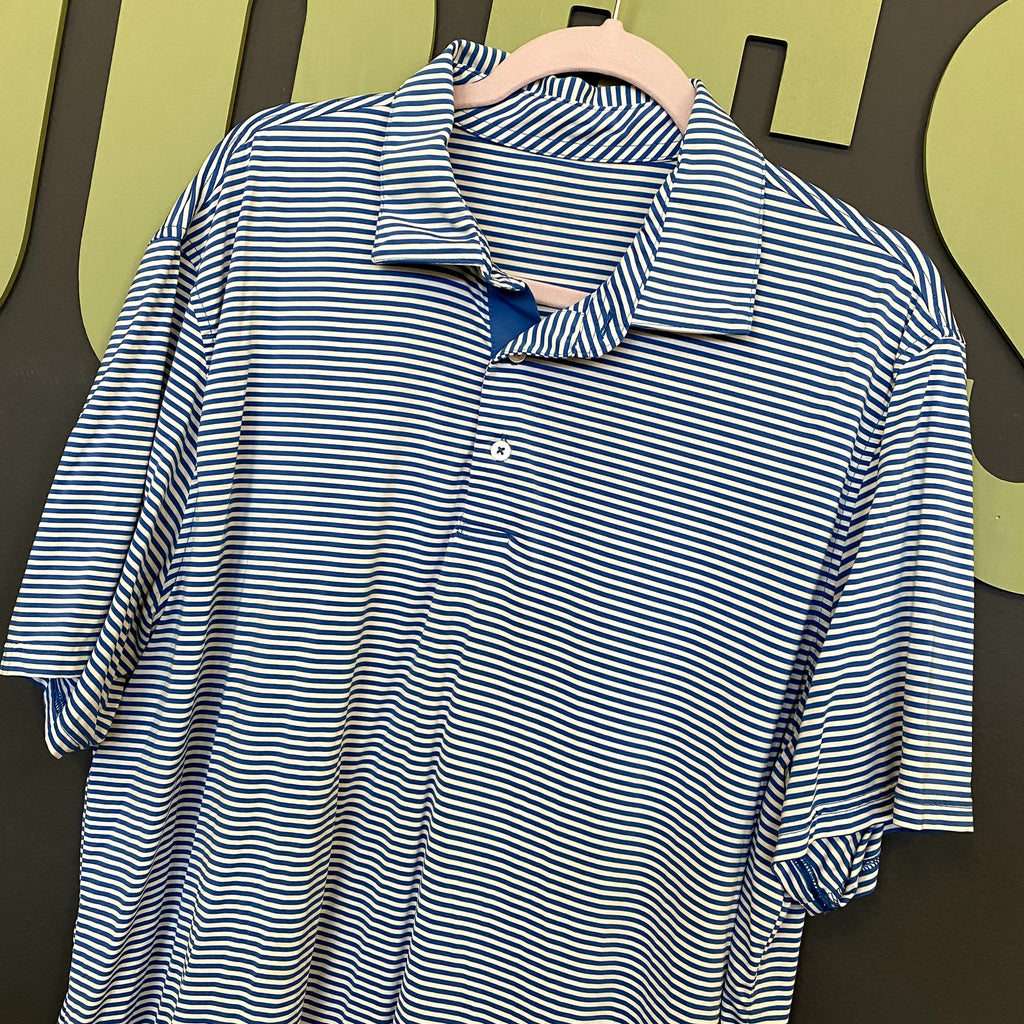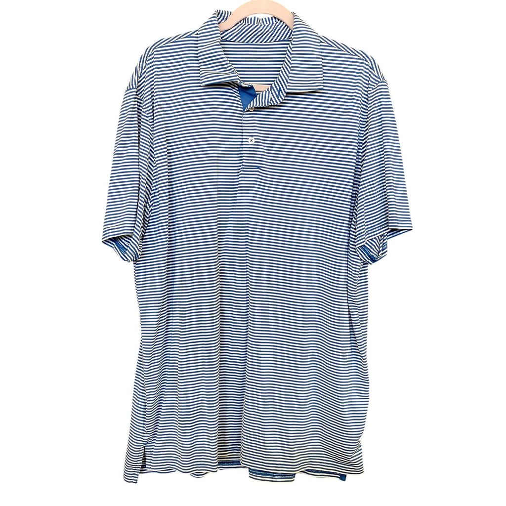 Southern Tide Performance Stretch Blue + White Stripe Short Sleeve Polo Shirt XL
