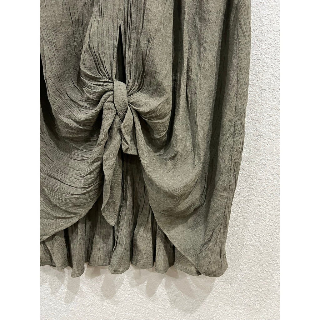 This Sweet Lovely by Jen olive green maxi skirt in large is a flowy and feminine piece perfect for effortless everyday style. The lightweight fabric drapes beautifully, and the playful tie detail at the front adds a subtle, charming touch.