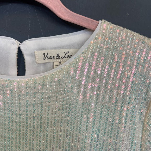 Vine & Love Boutique White Sequin Short Sleeve Blouse Small