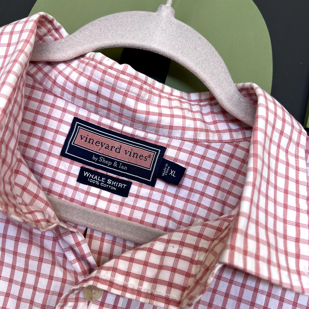 Vineyard Vines Light Red + White 100% Cotton Whale Shirt Button Down Top XL