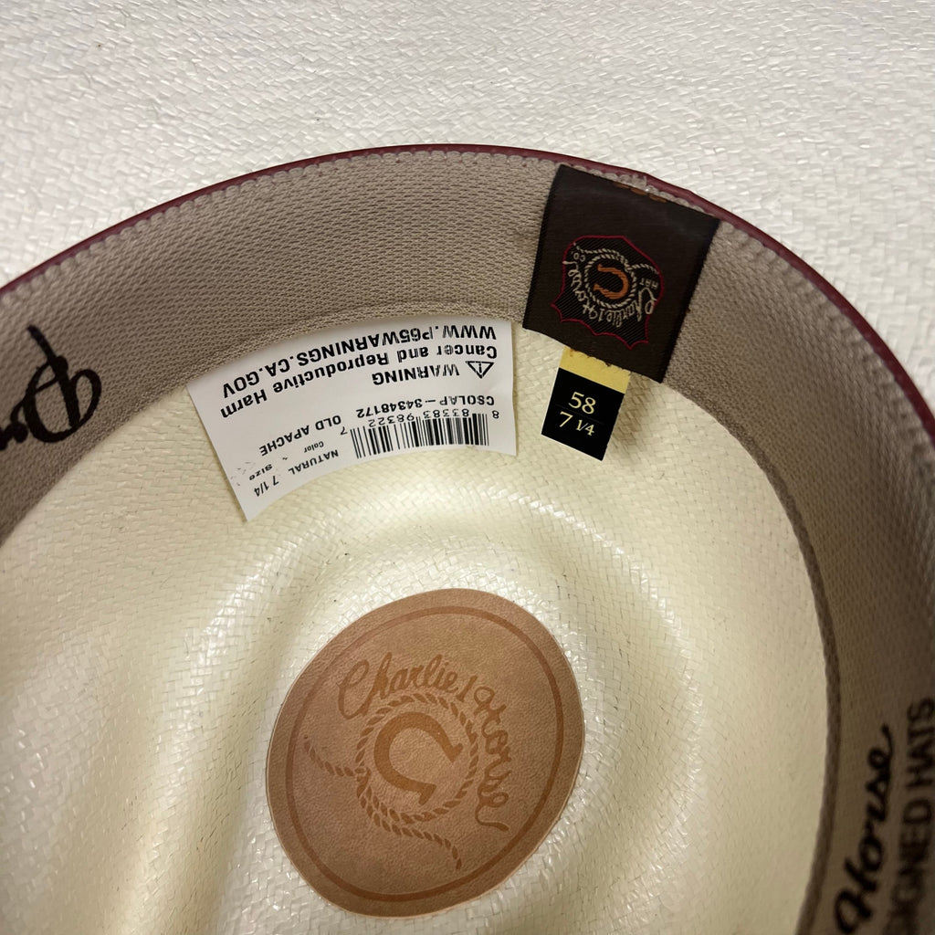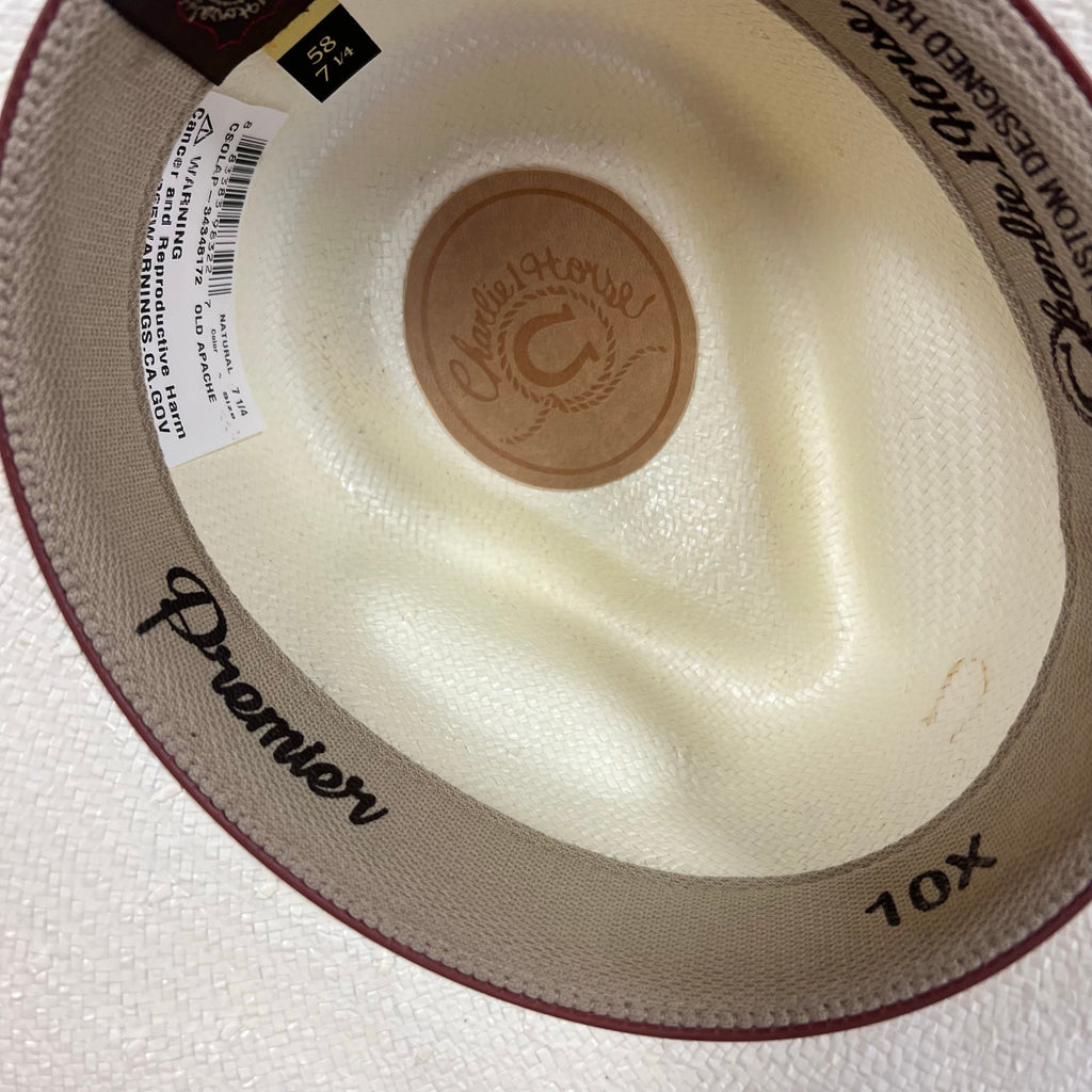 Keywords: Charlie 1 Horse Old Apache hat, 10X straw cowboy hat, pinch front straw hat, western straw hat, premium western headwear