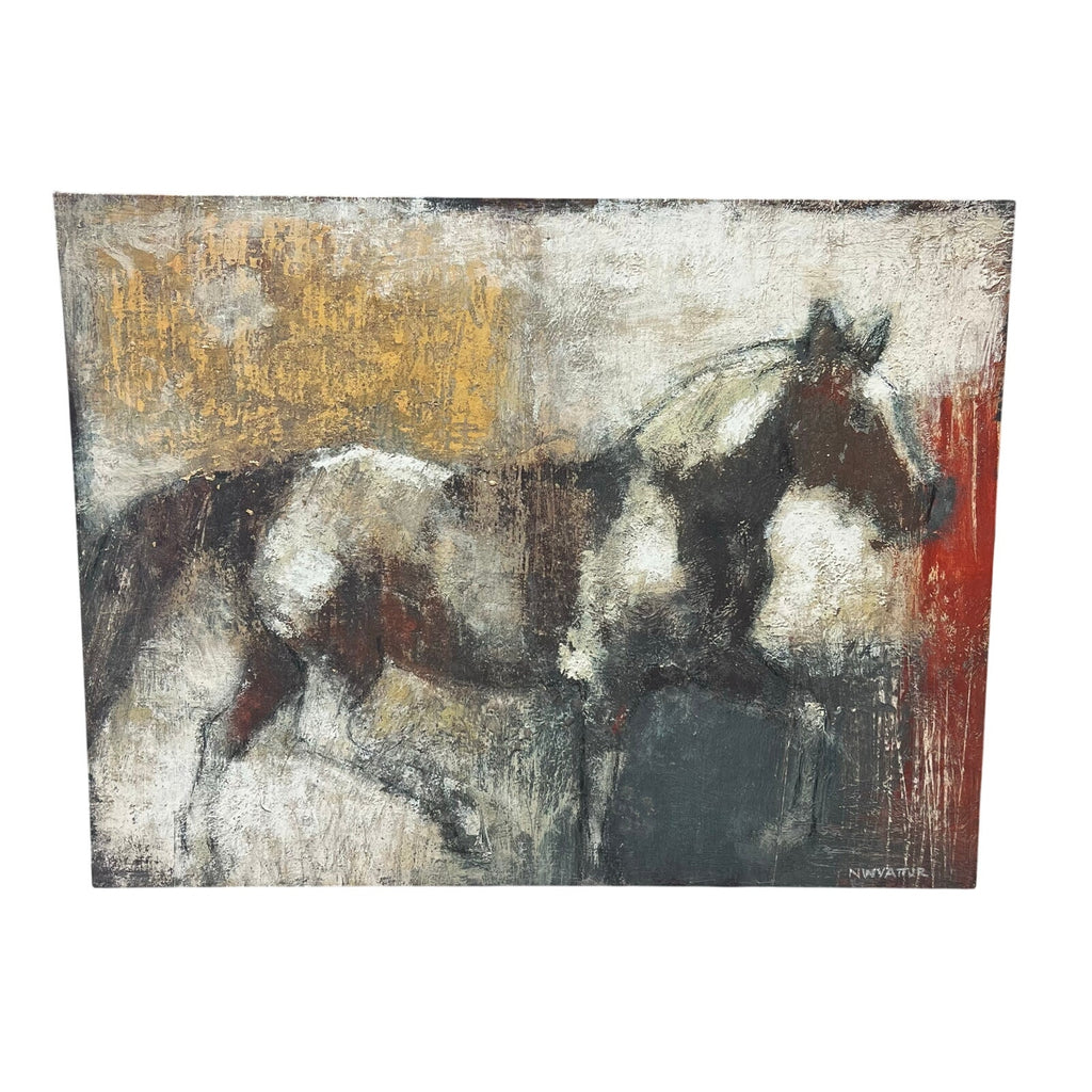 Make a bold statement with this farmhouse-inspired western horse canvas wall decor, measuring 30x40. Featuring a hand-painted horse design in rich hues of red, mustard, and navy, this piece adds warmth, movement, and rustic charm to any space. The large scale makes it ideal for anchoring a living room, office, or entryway wall, while the color palette blends beautifully with both classic western and modern farmhouse styles. In excellent condition and ready to hang, this striking canvas brings character and energy to your home.