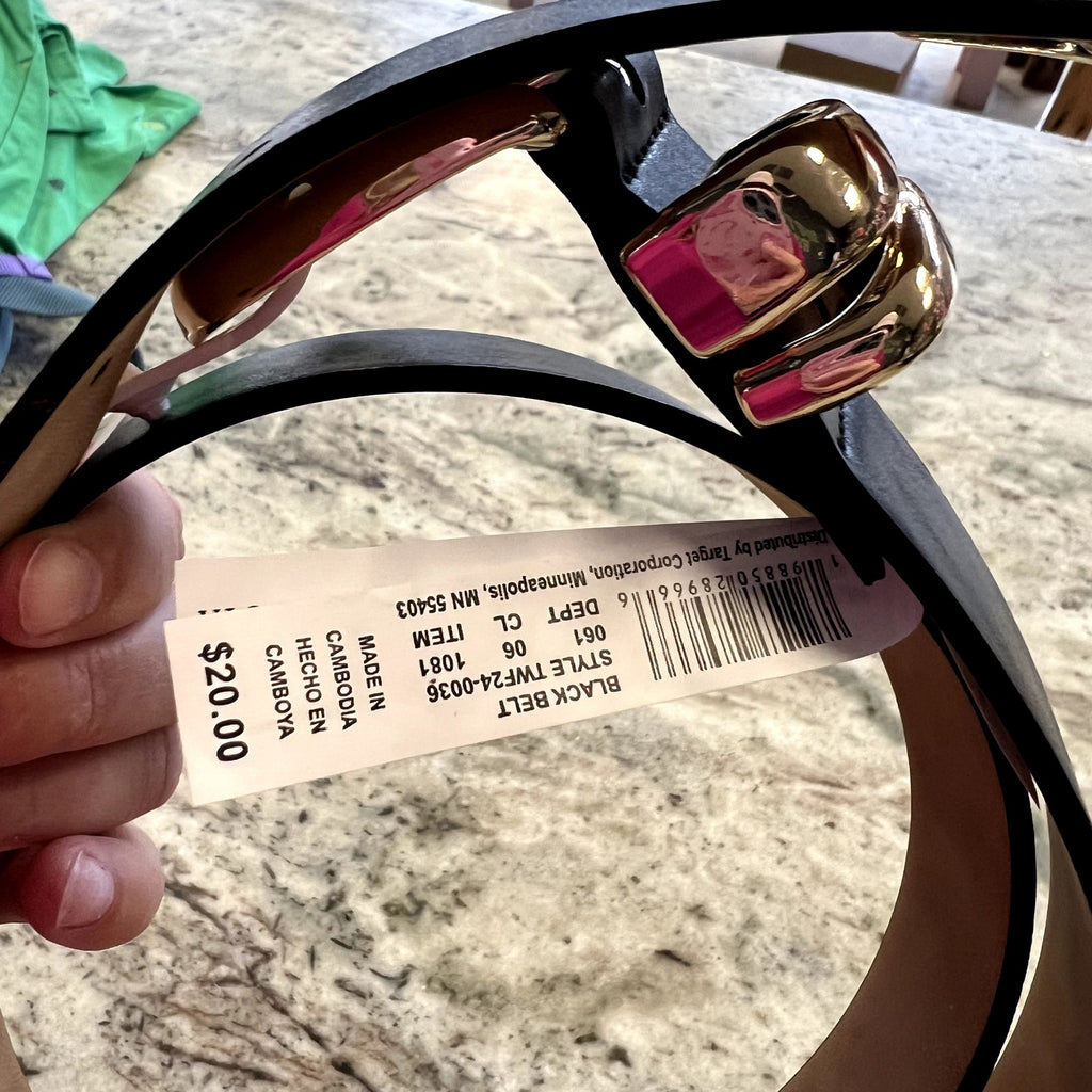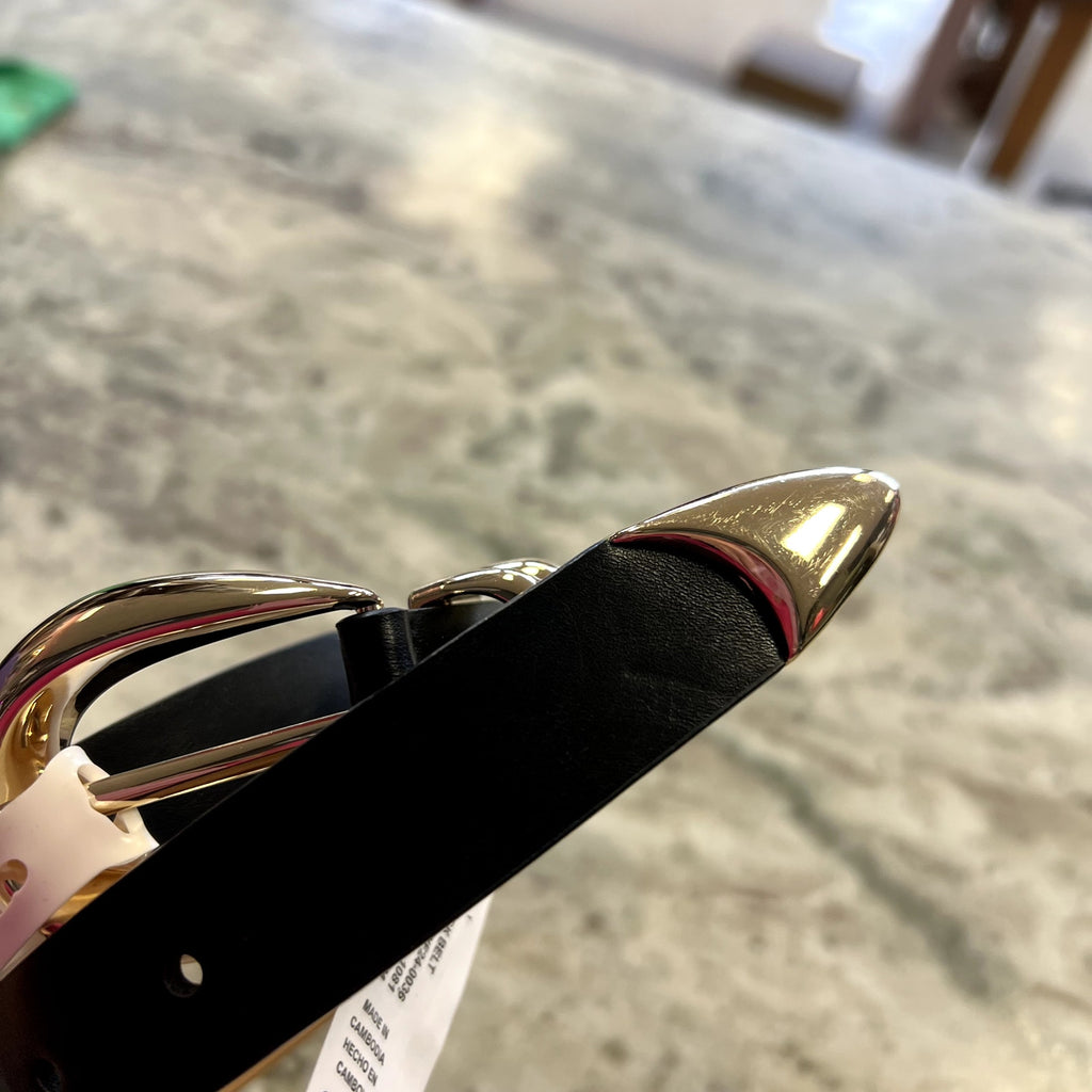 Keywords: A New Day belt, black and gold belt, women’s large belt, classic hardware belt, new with tags accessory, versatile waist belt