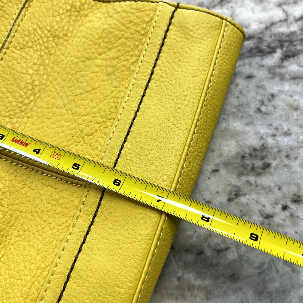 Brighten up any outfit with this cheerful yellow leather crossbody! The demi size is perfect for carrying your essentials without weighing you down, and the smooth leather gives it a sleek, polished look.