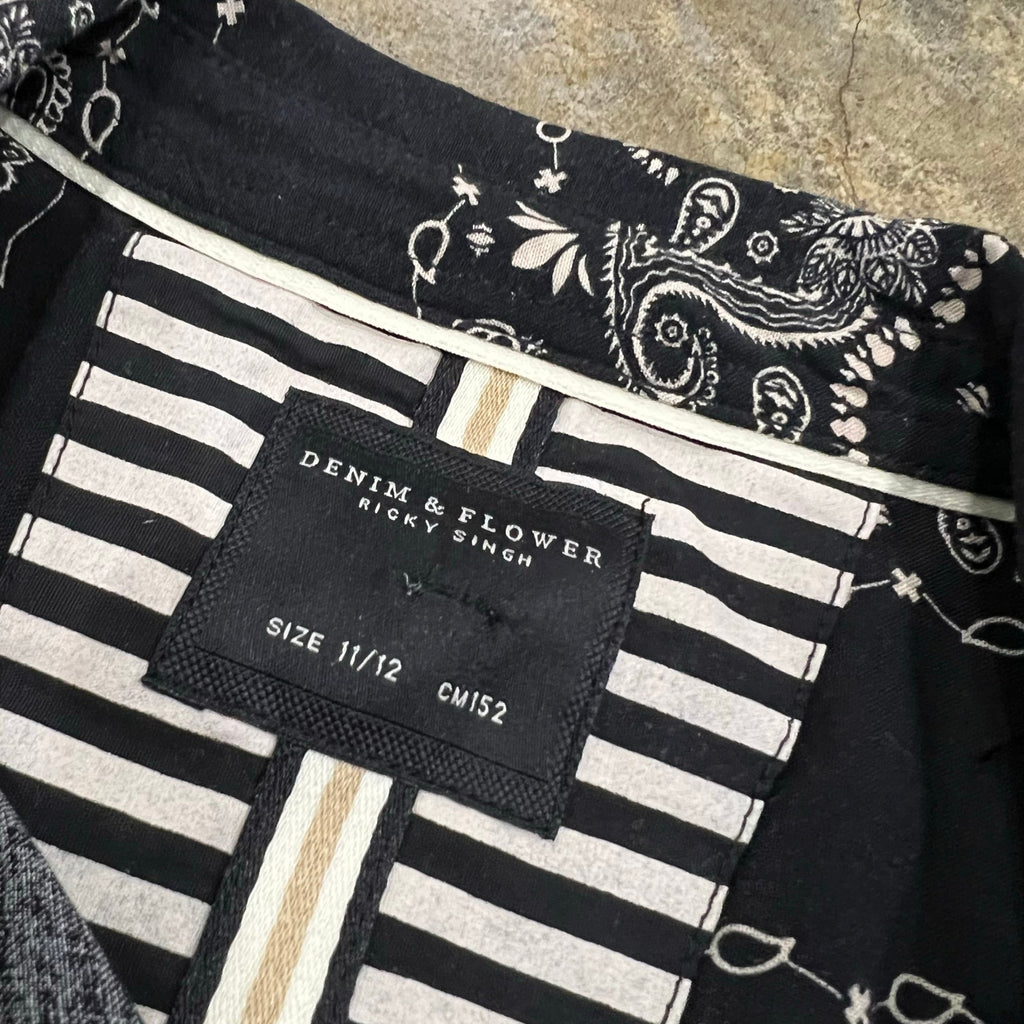 Denim & Flower by Ricky Singh Black Paisley Casual Button Down Top Boys 11/12