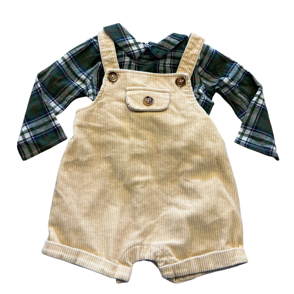 MudPie Corduroy Overalls with Plaid Undershirt Size 9-12 Mo