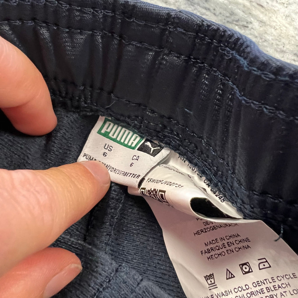 This Puma hoodie and jogger set is built for comfort, movement, and everyday style. The gray moisture-wicking hoodie keeps them cool and dry, while the navy joggers with red accents add a bold, sporty touch that stands out without trying too hard. It’s a great all-in-one outfit for school days, active play, or casual weekends.