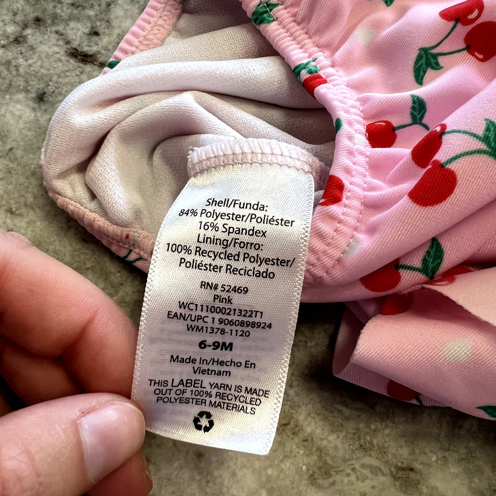 Baby Girls One Piece Pink Swimsuit Cherry Ruffle Size 6-9 Mo