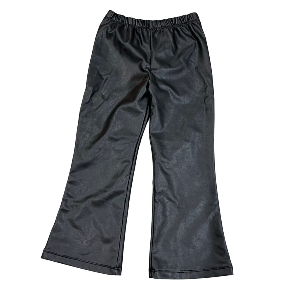 This trendy pair of girls black flare pleather pants (size 6) is the ultimate statement piece for a stylish little wardrobe! Made with a sleek faux leather finish, these pants feature a flattering flared leg that adds just the right amount of flair. Comfortable enough for everyday wear but chic enough for special occasions, they’re perfect for pairing with graphic tees, sweaters, or a cute blouse. A must-have for any fashion-forward kiddo, these girls faux leather pants bring the perfect mix of edgy and fun!