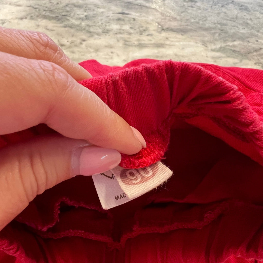 Bring fun and flair to her wardrobe with these red distressed super flare jeans! Designed for little movers, they feature a comfy pull-on style with an elastic waistband for easy dressing. The bold red color, distressed details, and playful flared legs make them perfect for casual days, playdates, or family outings. Stylish, comfortable, and full of personality—these jeans are ready to make her mini fashion statement!