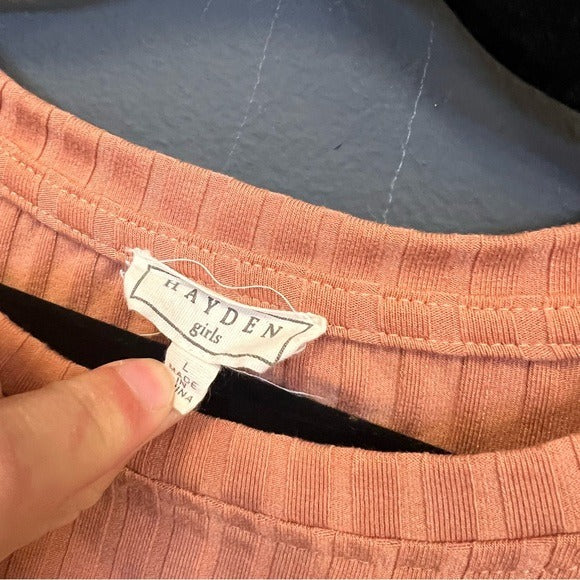 Hayden Girls Orange Ribbed Short Sleeve Top Size Large