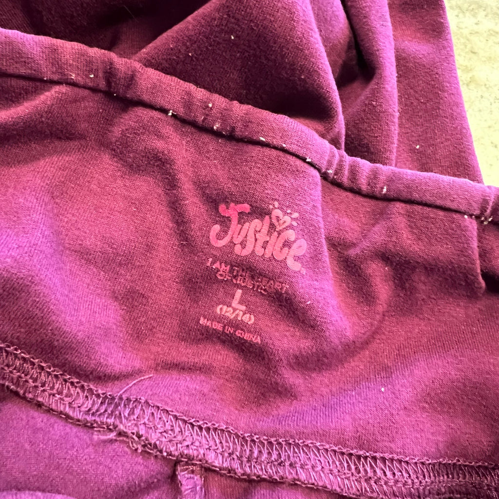 These Justice leggings in a rich dark plum shade are a versatile wardrobe staple. Soft, stretchy, and comfortable, they’re perfect for school days, playtime, or layering under dresses and tunics.
