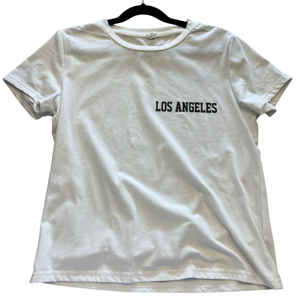 Keep it cool and casual with this white graphic tee, featuring a clean "Los Angeles" print on the front chest and a bold large star graphic across the back. It's the perfect mix of laid-back vibes and standout style.
