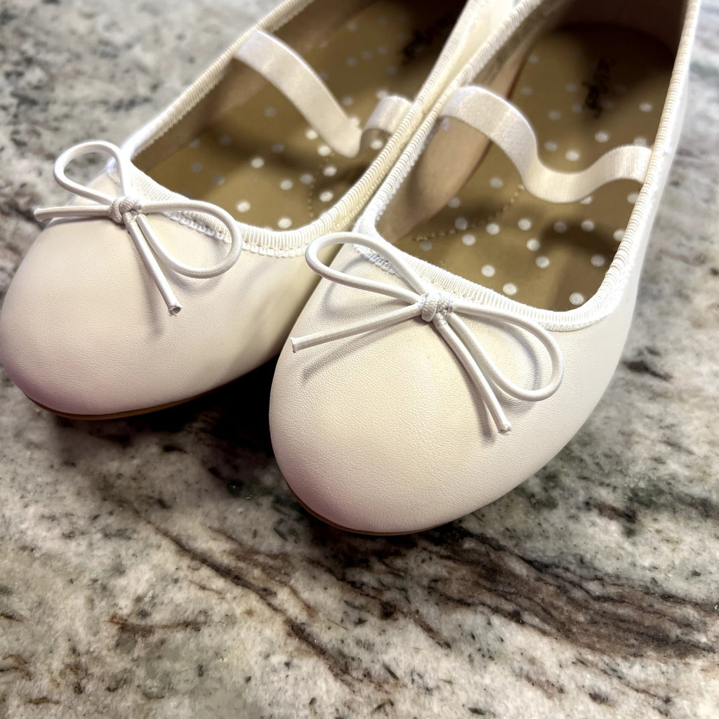 Keywords: Cat & Jack ballet flats, white girls’ shoes, slip‑on flats with bow, elastic strap flats, new with tags footwear, kids’ dress shoes