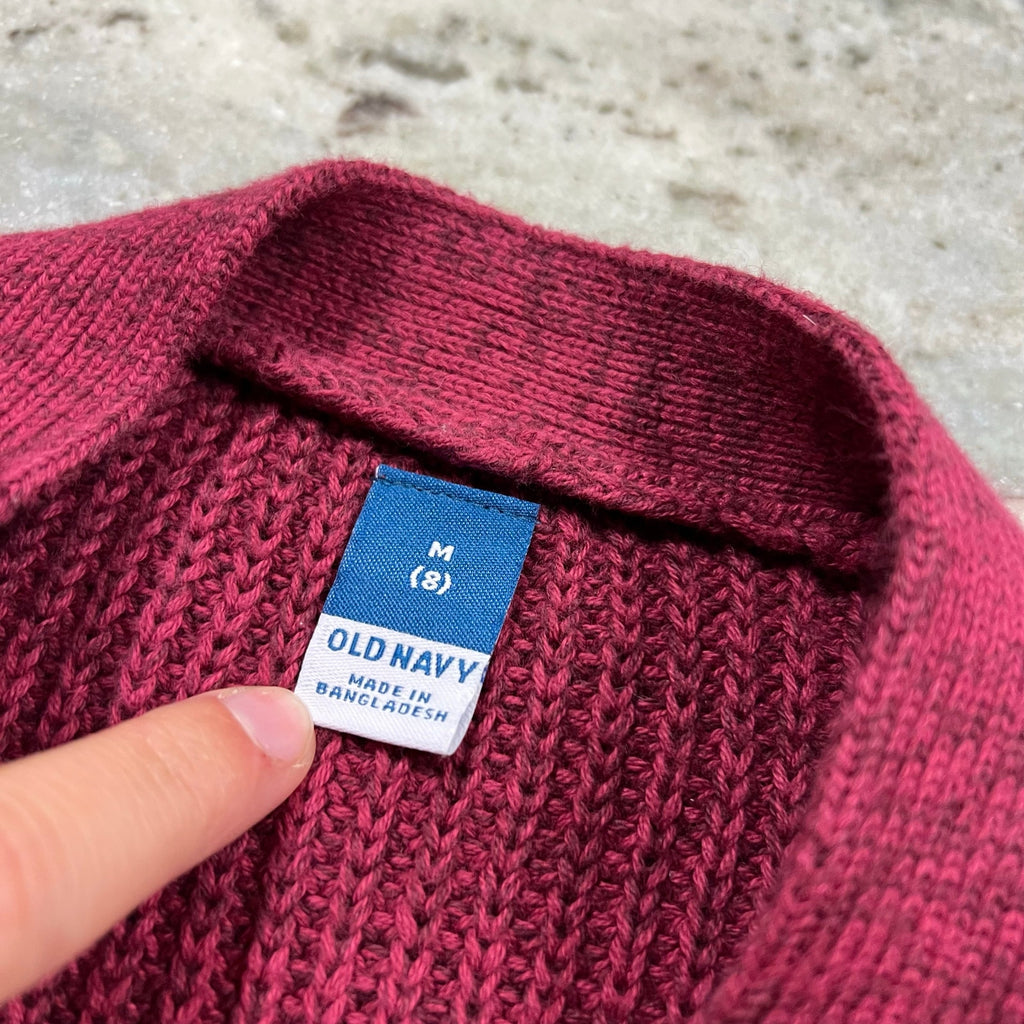 Cozy and timeless, this maroon Old Navy cardigan features a thick knit texture that adds warmth and structure. The button-front design gives it a classic, easy-to-layer look, perfect for school, outings, or cool-weather days. Soft, comfortable, and beautifully made for everyday wear.