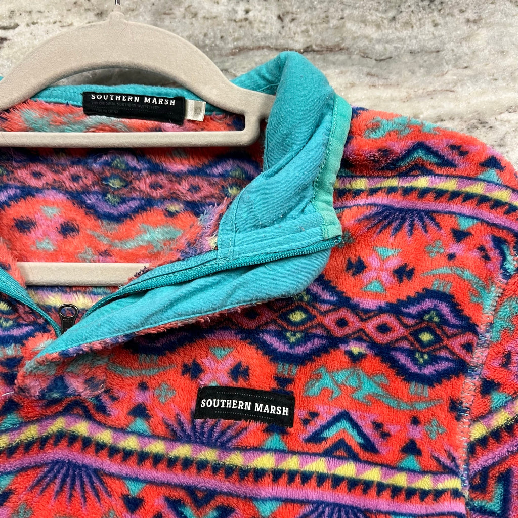 Southern Marsh Dorado Fleece Pullover Coral/Teal Aztec Size Youth Large