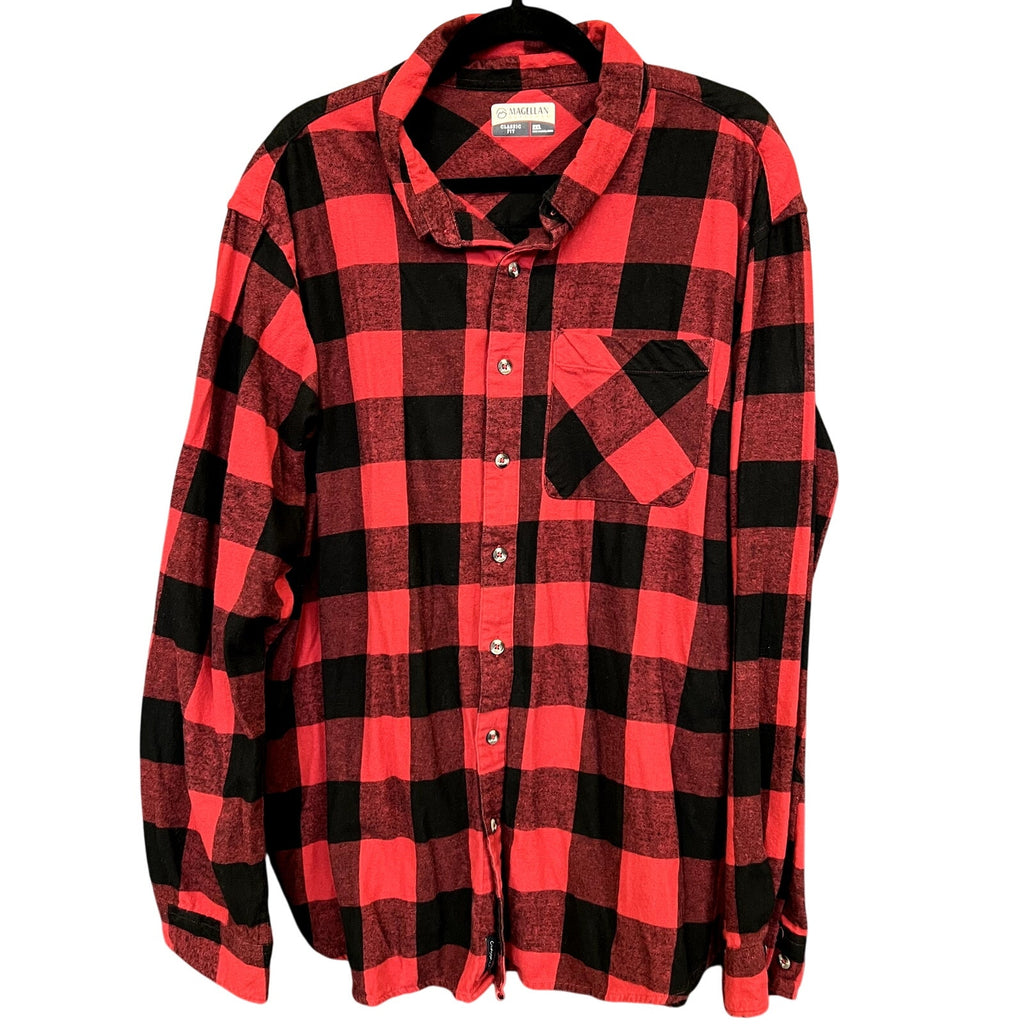 Magellan Classic Fit Red + Black Plaid Flannel – Size 2XL