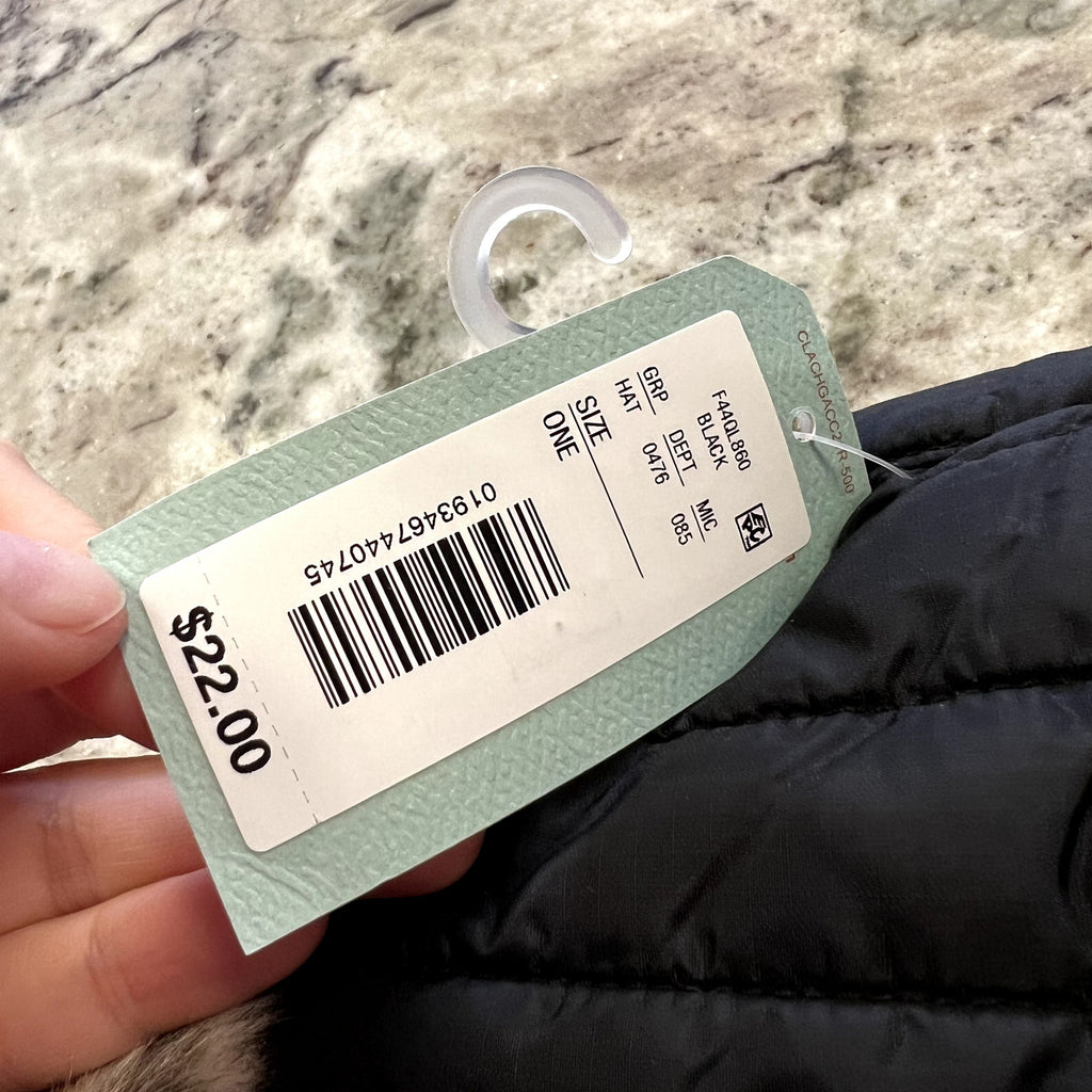 Keywords: Class Club trapper hat, black quilted winter hat, faux fur trim hat, nylon trapper hat, new with tags winter accessory, cold weather headwear