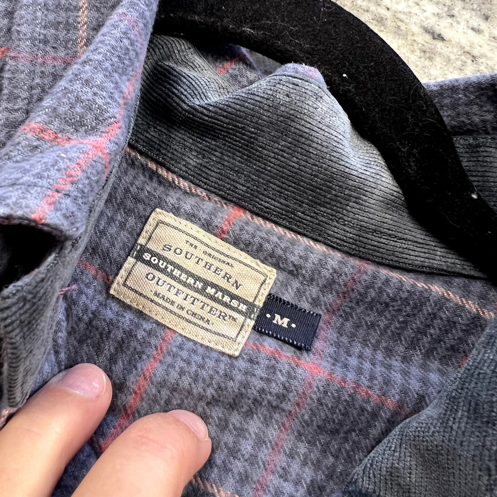 Keywords: Southern Marsh button-down, men’s cotton shirt, blue and pink dress shirt, casual button-up top, medium men’s shirt, classic prep shirt