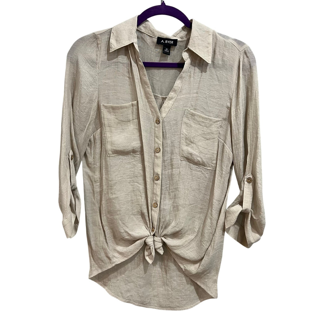 A. Byer Lightweight Taupe Button Down Blouse Medium