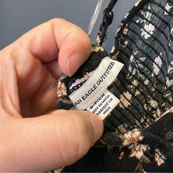 American Eagle Outfitters Floral Black Ruffle Smocked Romper Size Small