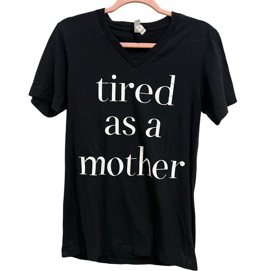 Bella Canvas Tired as a Mother Black V-Neck Graphic Tee Small