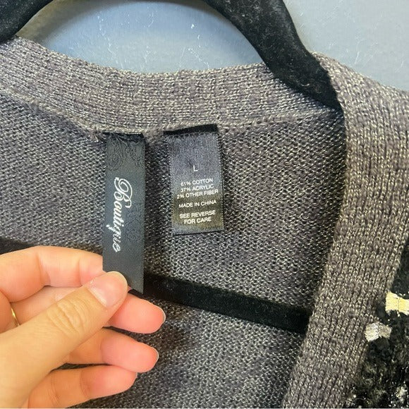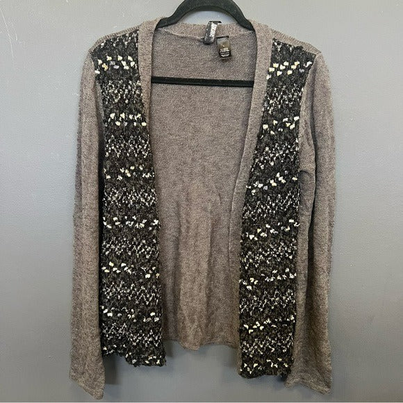BKE Boutique Sequin Gray Long Sleeve Open Front Cardigan Size Large