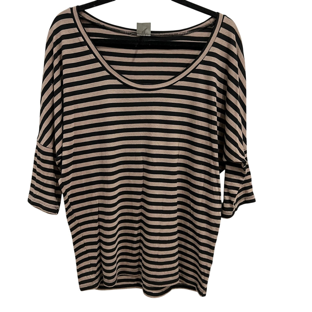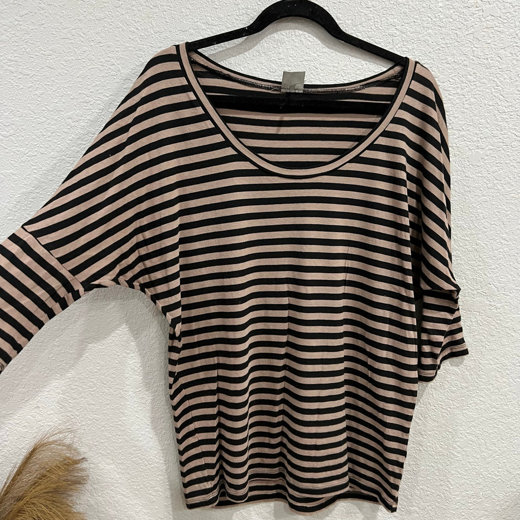 Bobi Black + Brown Striped Dolman Sleeve Scoop Neck Blouse Size Medium