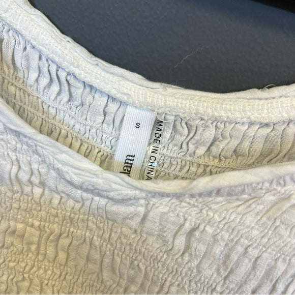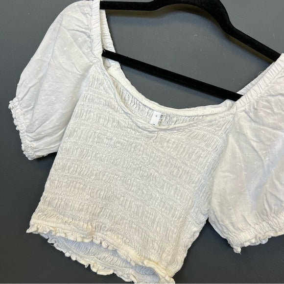 Glam Smocked Bubble Sleeve White Crop Top Small
