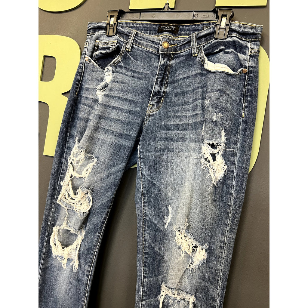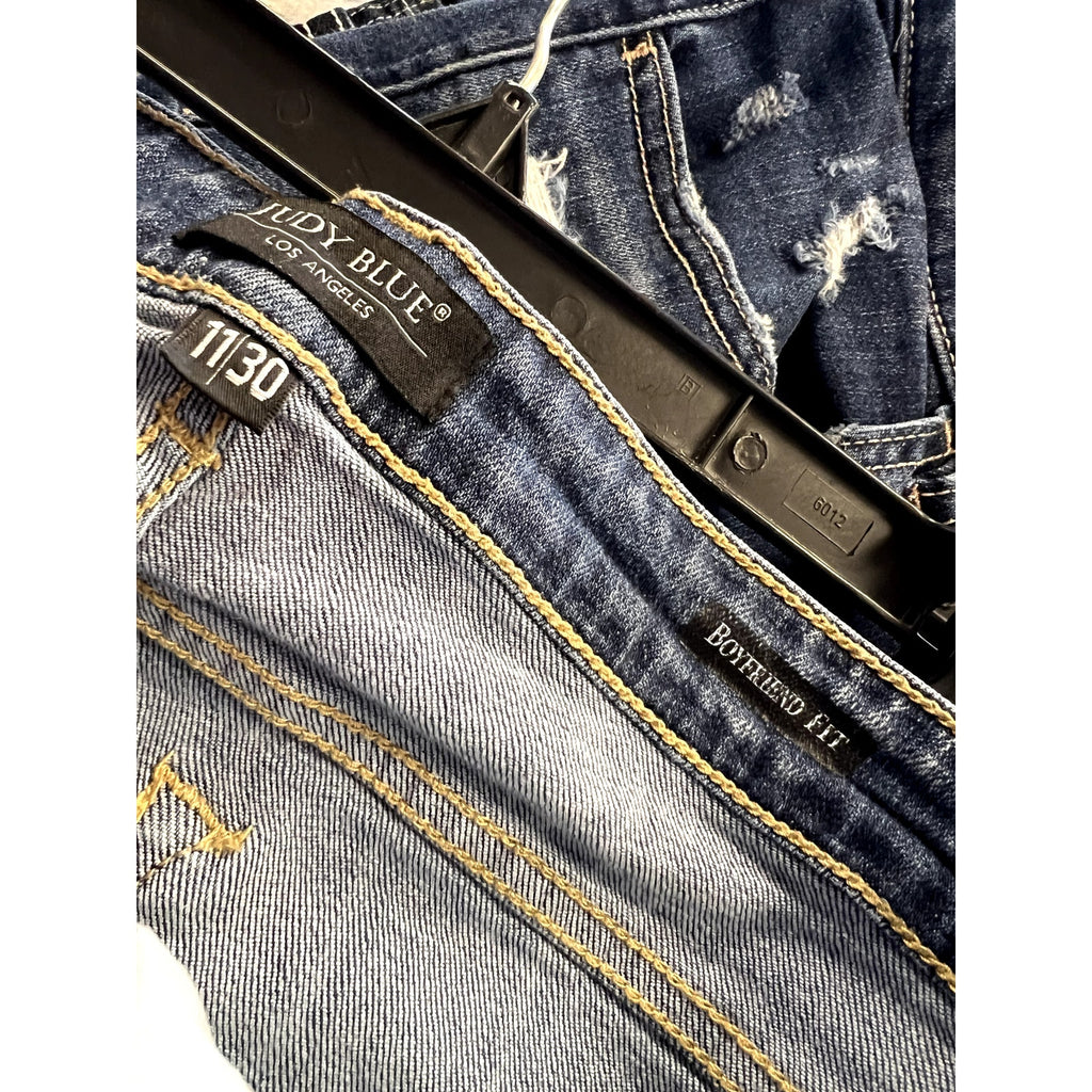 Keywords: Judy Blue jeans, distressed boyfriend jeans, straight leg women’s denim, casual everyday jeans, size 11 women’s jeans, relaxed fit jeans