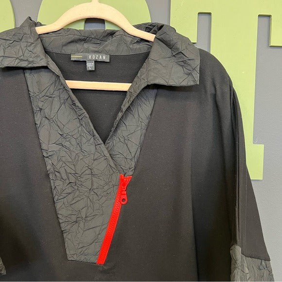Kozan Flora Top Black + Red Parachute Quarter Zip Large
