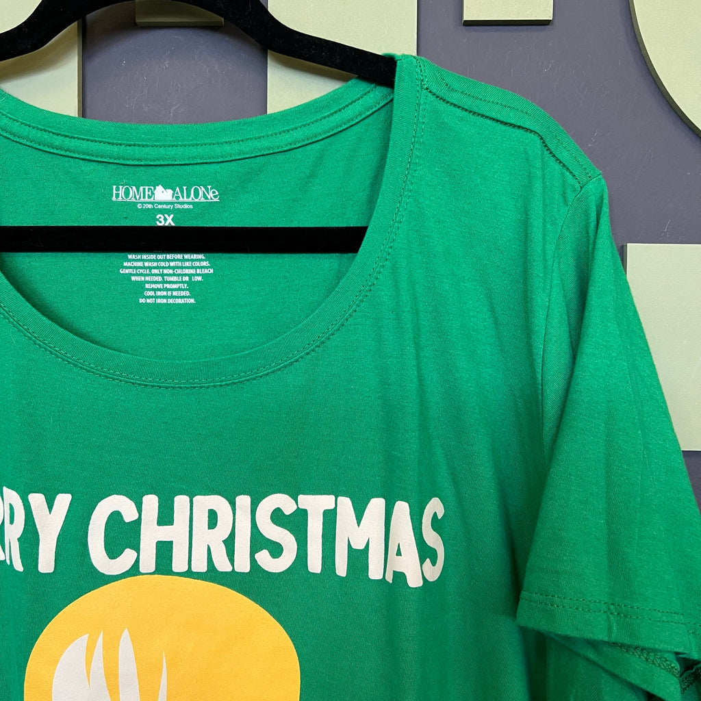 Get into the holiday spirit with this Merry Christmas Home Alone graphic tee in size 3XL. This green tee features the classic “Merry Christmas Ya Filthy Animal” phrase along with a fun Home Alone graphic on the front. Soft, festive, and perfect for holiday parties, movie nights, or cozy seasonal outfits, it’s an easy way to show your love for this iconic Christmas classic.