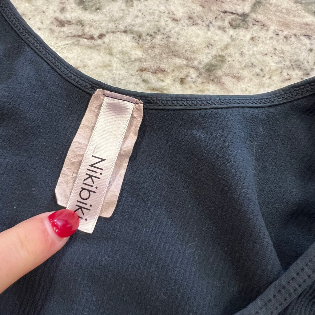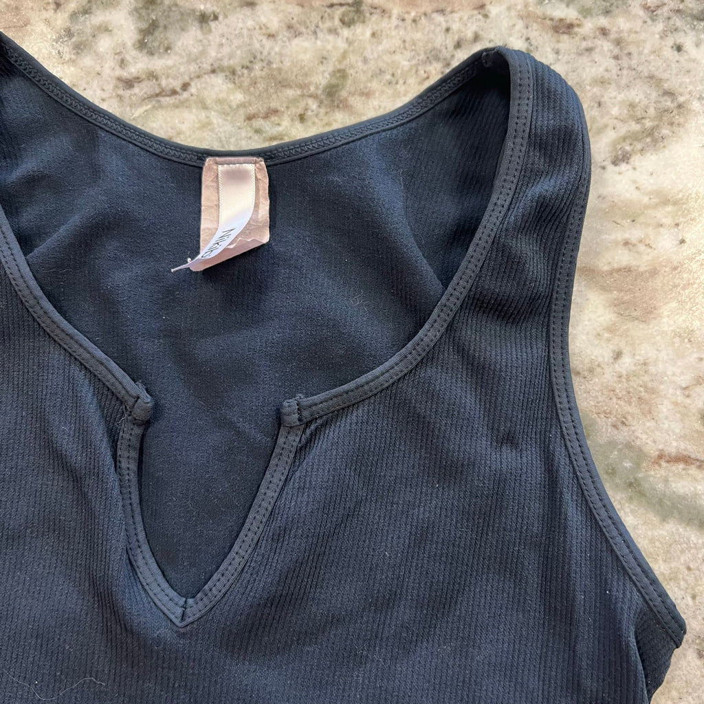 Keywords: Nikibiki tank top, ribbed V-neck top, women’s charcoal tank, versatile layering top, one size ribbed top, casual fitted tank