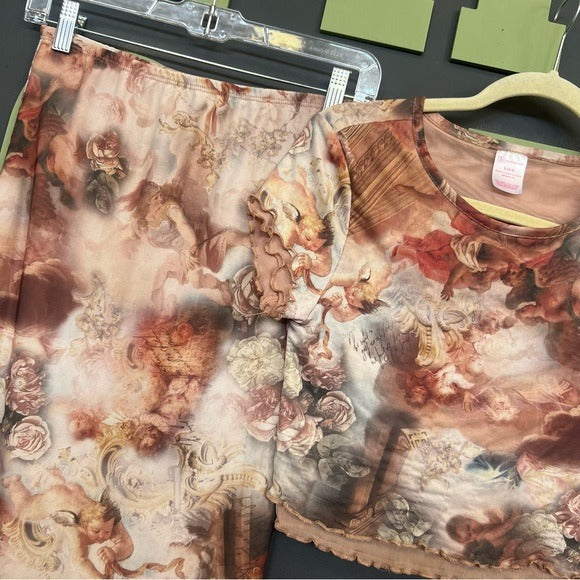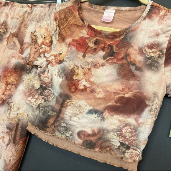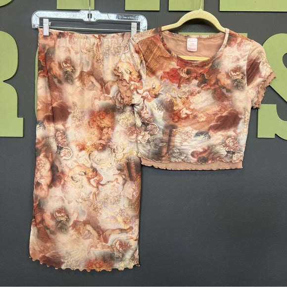NOBO Angel Mesh Ruffle Crop Top + Skirt Set Size Small