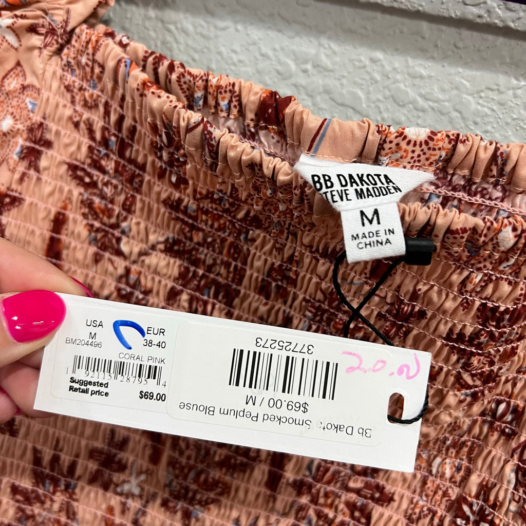 NWT BB Dakota Mauve Smocked Peplum Floral Blouse Medium