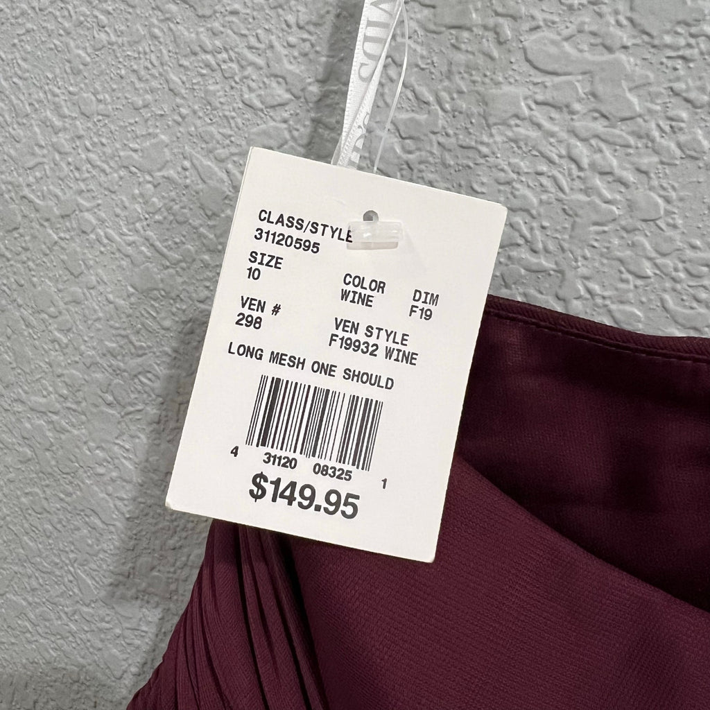 NWT David's Bridal Long Mesh One Shoulder Maroon Bridesmaid Dress Size 10