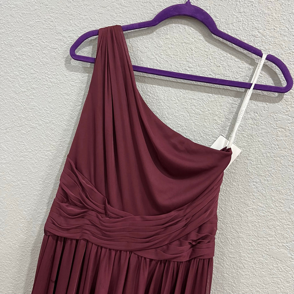 Brand new with tags, this stunning maroon bridesmaid dress from David's Bridal features a flattering one-shoulder neckline and flowy mesh fabric for an elegant, romantic look. The full-length silhouette is perfect for weddings, formal events, or any occasion where you want to make a graceful statement.